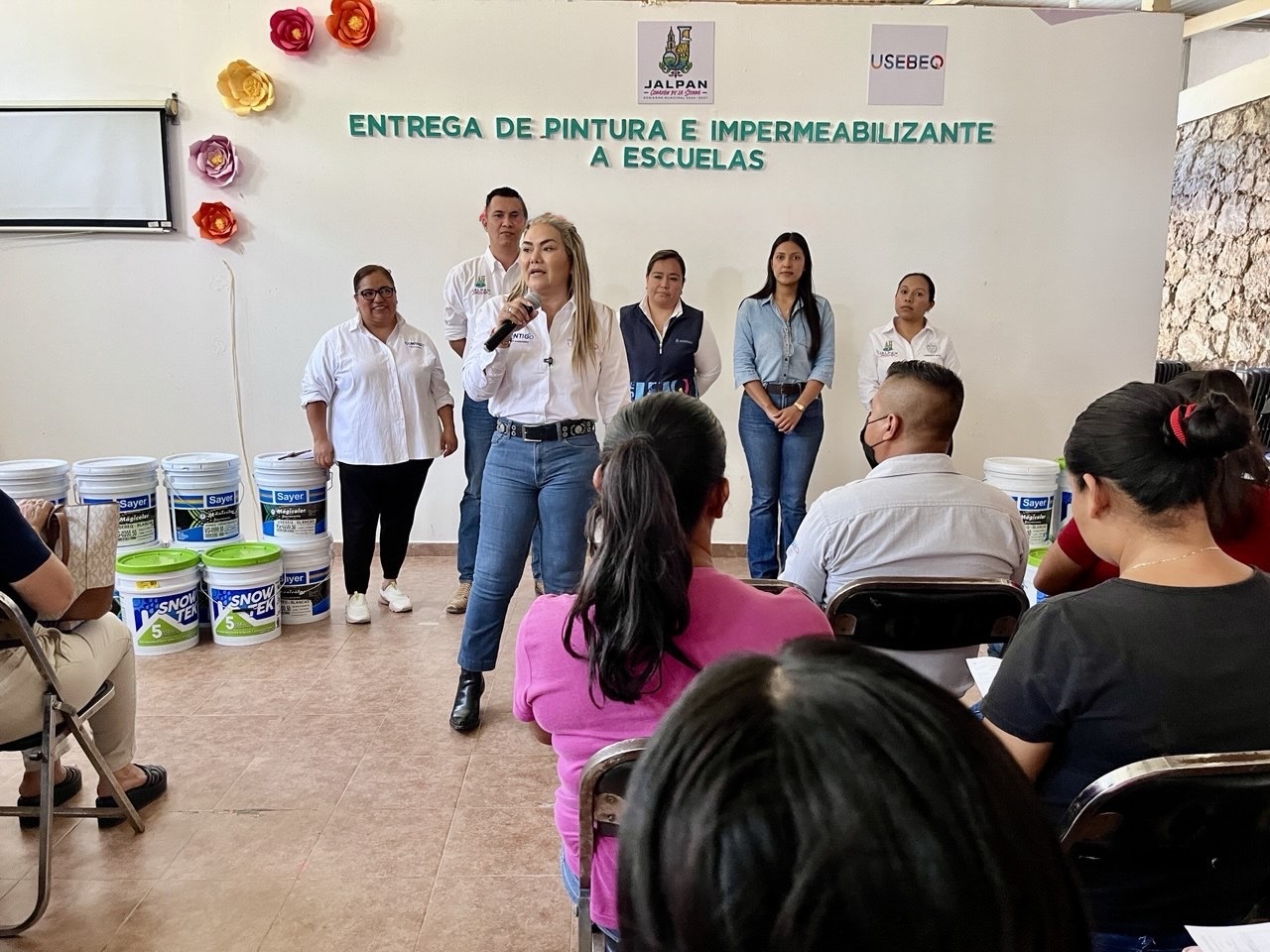 Se entregaron 509 cubetas de pintura, 139 cubetas de impermeabilizante y 60 luminarias a 83 planteles de los cuatro municipios serranos, materiales que serán utilizados para la recuperación, mantenimiento y mejoramiento de los planteles escolares, con el fin de elevar la calidad de los espacios educativos y fortalecer el sentido de pertenencia en las comunidades.