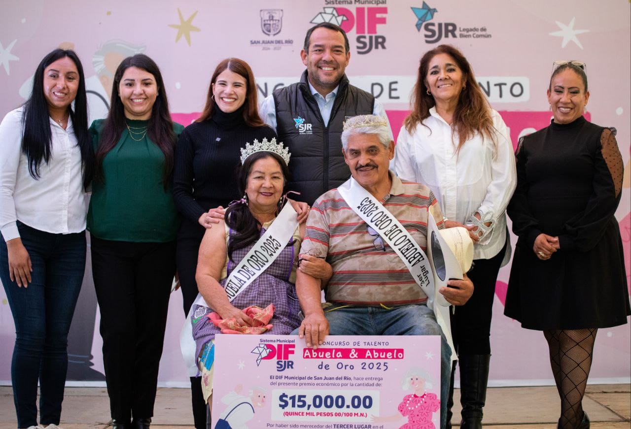 En un ambiente familiar y de celebración, se llevó a cabo el Certamen Abuela y Abuelo de Oro 2025, evento que fue encabezado por la presidenta del Sistema Municipal para el Desarrollo Integral de la Familia (DIF) de San Juan del Río, Gina Sánchez Barrios, y el presidente municipal sanjuanense, Roberto Cabrera Valencia, a través del cual se crea comunidad y se fortalece el Legado de Bien Común.