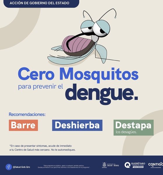 La Secretaría de Salud (SESA) del estado de Querétaro, exhorta a la población a adoptar y reforzar las medidas preventivas ante el incremento en el número de casos de dengue en México. Es primordial eliminar todo tipo de criaderos de mosquitos, protegerse de las picaduras y solicitar atención médica oportuna en caso de presentar síntomas.