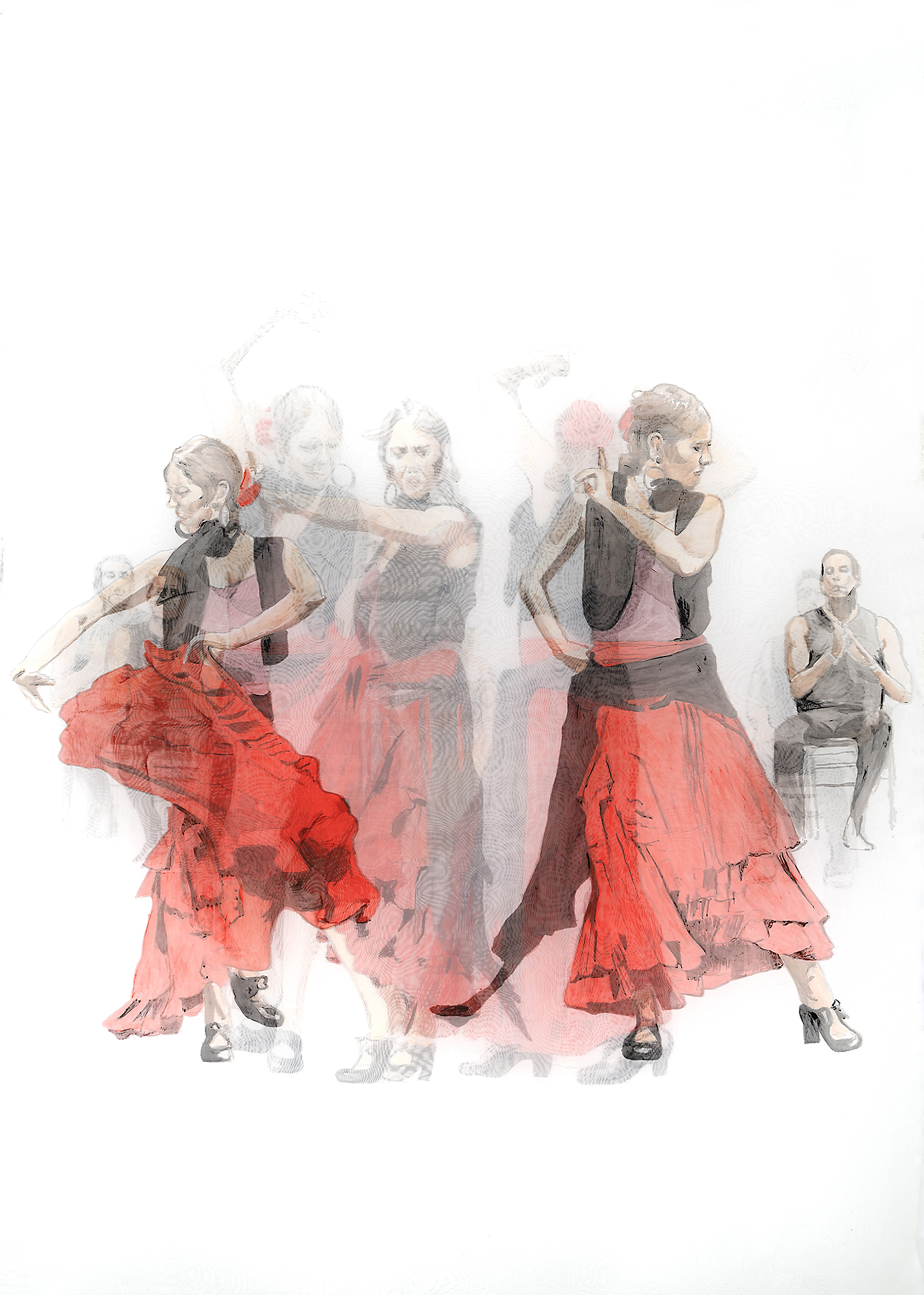 La muestra “Momentos suspendidos en el tiempo”, permite a James Harvey llevar los colores y el trazo a sus telas, capturando y dejando ser, a la vez, el dinamismo del lenguaje coreográfico, su sentimiento, su calidez y vitalidad.