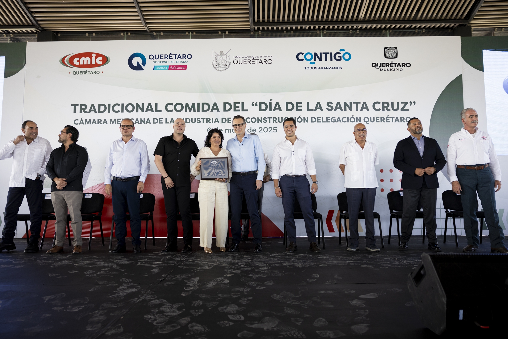 El titular del Poder Ejecutivo, Mauricio Kuri González, entregó reconocimientos a integrantes de la Cámara Mexicana de la Industria de la Construcción (CMIC) delegación Querétaro, por años de antigüedad y su aporte al desarrollo económico del estado, al presidir la ceremonia alusiva a los festejos del Día de la Santa Cruz, en la que participaron representantes del gremio que se ha destacado como un sector generador de empleo formal y fuente de ingresos para miles de familias queretanas.